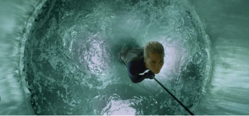 There is no way to go into the movie without spoilers. So after this be prepared, because they are coming now. Cara finds Furby’s dead body. (I did warn you they were coming, if you weren’t fully prepared at this point, I feel that is on you.) But he has his video camera with him. They check it out to see what may have happened. They are super confused because his footage shows night falling and the next day coming. Which leads to him falling to his death. But they have only been in the cave for about an hour. And really, Furby has been in there and dead for the majority of that hour!