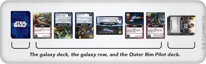 If you haven’t played a deckbuilder before, the basics of it shall be touched upon now. This is a two player only game. Each player has a deck of ten cards that are effectively identical. 7 cards that are worth one purchase, 2 cards that are worth two combat, and 1 card that is a wild (one purchase, one combat, or one force movement.) Players shuffle up their ten card deck and draw five as a starting hand. Between the players is a lineup of six cards that can be bought or attacked if they are the opposing faction (Rebels vs Empire). Each player has a stack of planetary bases that they are defending. How many can be variable to make longer or shorter games. There is a force track that will potentially impact how powerful some cards are, so you are well served being the one with the force on your side (this is a tug of war track so only one can have the force on their side.)