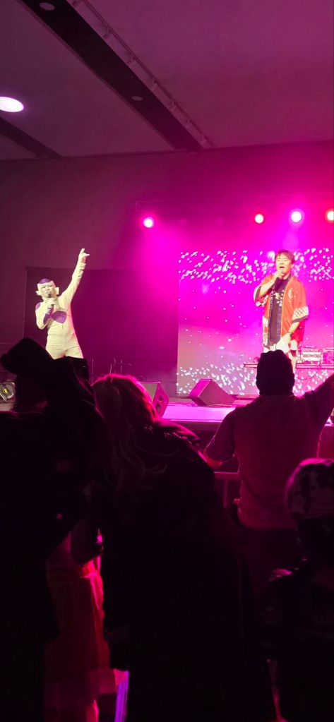 There was a one time only interactive concert collaboration (Anison [anime song] Disco Live) between comedy duo BAN BAN BAN (Hiromi Sameshima and Masatake Yamamoto) & Sasara Sekine (music idol, actor and model) which was an absolute blast. This performance was separate from Naka-Kon’s typical yearly rave (which featured Getty [ゲッティー] as the DJ this year).