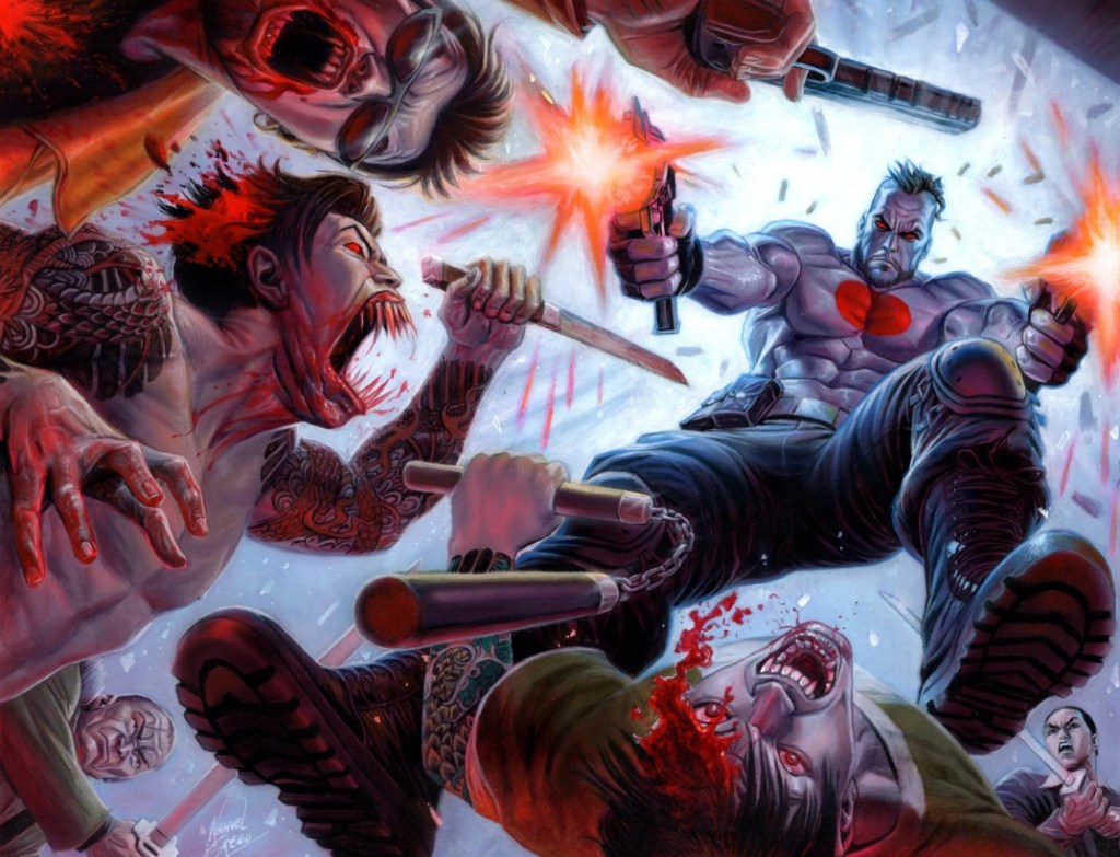 In this new series he has a bit of a Lobo feel to him as well as a Blade vibe. Part of that centers around him fighting ninja vampires in daylight.
